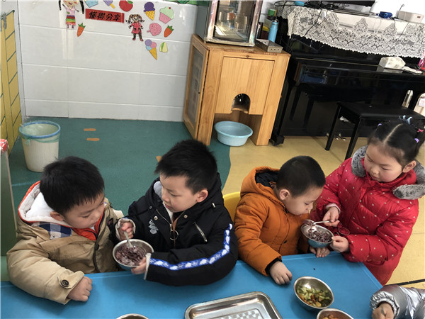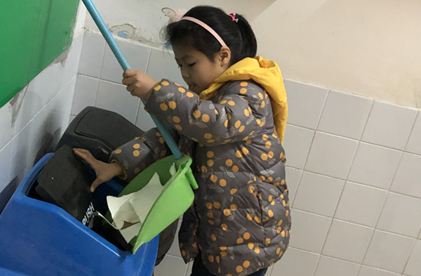 孩子们边唱着儿歌《学习雷锋好榜样》,边拎着塑料袋,拿着扫把,分散到幼儿园及幼儿园周边的各个角落,开始拾捡垃圾,每个角落里都能看到孩子们忙碌的身形、奔波的脚步和欢悦的笑容。大班的小朋友还去到苗苗班,喂弟弟妹妹吃饭,帮助保育员阿姨减轻工作量。