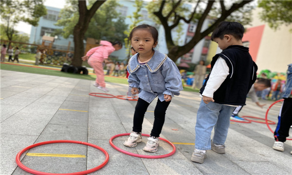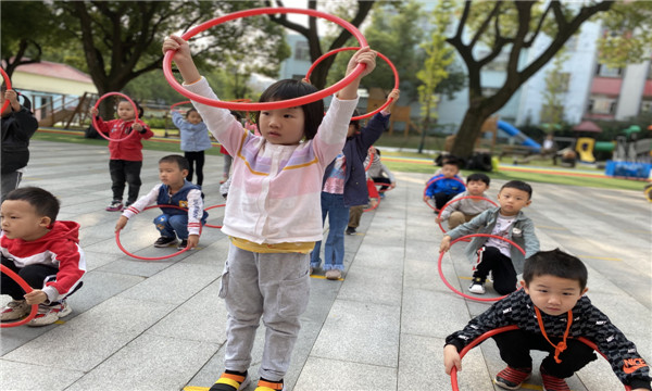 早操是幼儿园一日活动中重要的环节,也是深受孩子喜爱的户外体育活动之一。新学期开始,10月13日,天宁区天元翠竹幼儿园中班年级在早操活动中进行了大胆尝试和创新,从幼儿年龄特点和身体发展水平出发,将“以游戏为基本活动”的理念融入到早操中,创编了一套游戏化早操。早操活动时,在音乐的选择、器械的使用、动作的编排、队列的变化到游戏的内容,都给予幼儿充分的参与机会,巧妙融合游戏的元素。