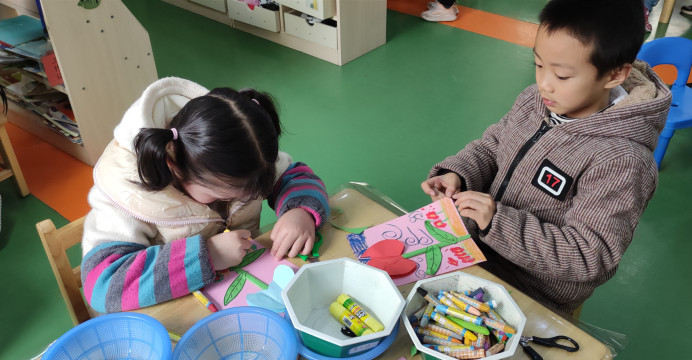 2021年3月5日,常州市天宁区天元翠竹幼儿园大二班的孩子们一起了解了一个属于妈妈们的节日——三八妇女节,为了感谢妈妈和奶奶们的辛苦付出,孩子们决定自己动手做一张美丽的卡片送给她们,他们自行选择材料,剪下花瓣和叶子,通过画、剪、拼、贴等步骤,制作成一朵朵美丽的郁金香,并粘贴在卡片上,孩子们还在卡片上写下通过图画的方式来表达自己对妈妈的祝福。瞧!他们做的多认真啊!