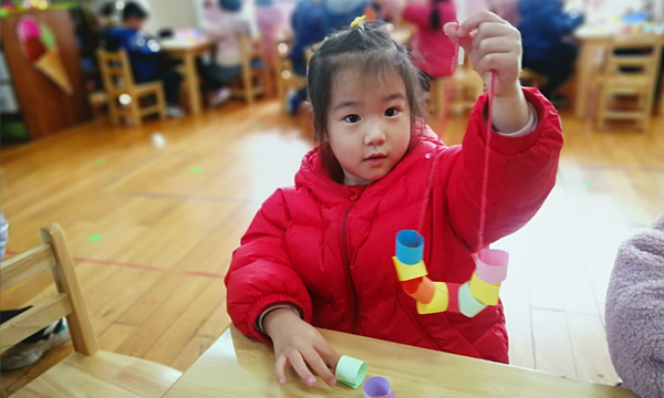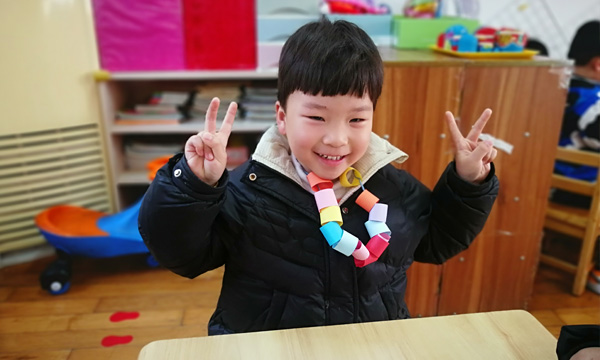 3月5日上午,为了进一步表达我们对妈妈的爱,小三班的孩子们,准备用自己的小巧手,给最美的妈妈送上节日礼物。在和孩子们聊天的时候,了解到他们最想送给妈妈的是项链,于是我们就开展了“送给妈妈的礼物”手工活动,孩子们在热情高涨的氛围中,积极认真地完成着自己手中的“礼物”。一个个彩色的纸环,一串串美好的祝福,孩子们把完成的项链挂在脖子上,等待着放学后将礼物送给妈妈。