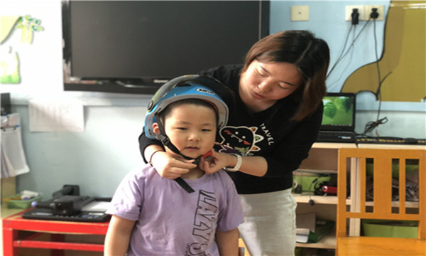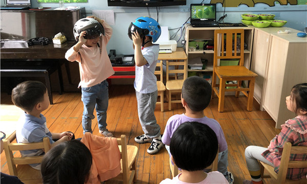 一盔一带已经实行一年了。5月18日,为了让孩子和家长持续地佩戴头盔,天元翠竹幼儿园中三班开展了“一盔一带,我们一直在进行”安全教育活动。