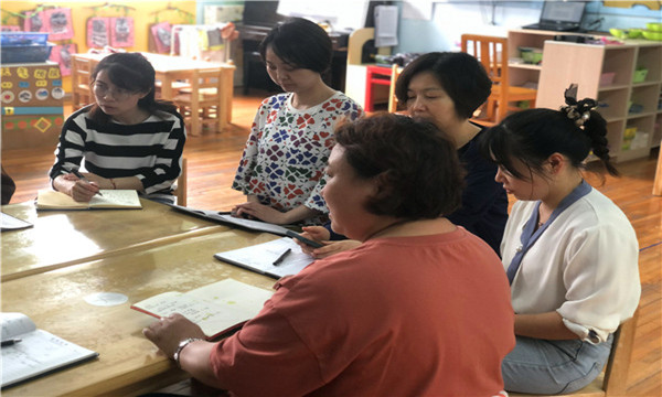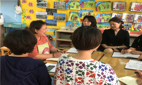 活动中,年级组长向中班年级组的教师们传达了此次主题研讨的文件精神,带领大家明确了天宁“精神符号”概括的要点。老师们集思广益,纷纷献上自己对“精神符号”的概括。