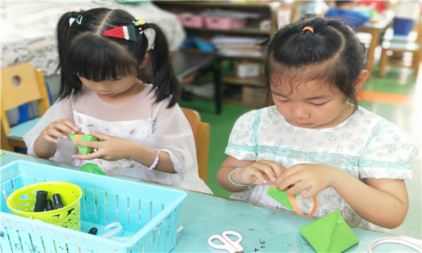 活动一开始,孩子们通过观看视频了解了端午节的来历和习俗,还了解了艾草、菖蒲有驱赶蚊虫的作用,端午节孩子佩香囊有襟头点缀之风。接着,开展了做粽子、挂粽子、划龙舟等活动,让孩子们体会传统节日的快乐。