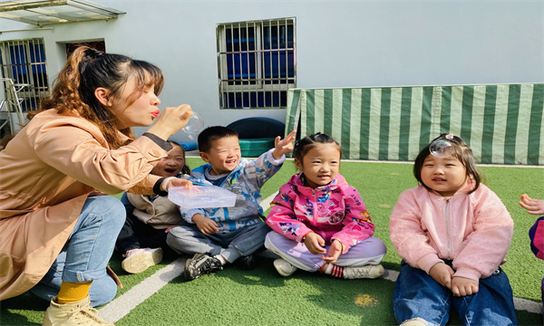 这是大自然的自然感官教育,可以让孩子们观察泡泡在阳光下的色彩,更是可以锻炼孩子的手眼协调能力,通过自己动手实验感受泡泡形成的过程,是很珍贵的体验感哦!