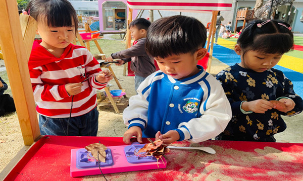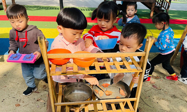 为了丰富校园文化游戏生活,让孩子们在户外清新的环境下享受游戏带来的快乐。11月3日下午,翠竹幼儿园小四班的宝贝们体验了不一样的游戏活动一一户外娃娃家。
