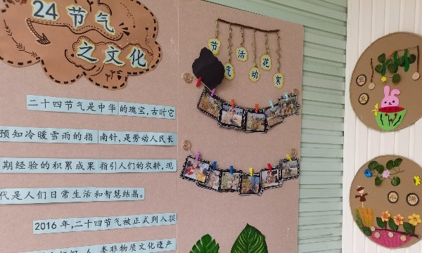 “二十四节气”是中国劳动人民独创的文化遗产,是劳动人民经验的积累、智慧的结晶,它能反映季节的变化,指导农事活动,影响着千家万户的衣食住行。幼儿园就是以这种浅显易懂,与孩子的生活息息相关的文化墙体裁来引导孩子们感受二十四节气的魅力。