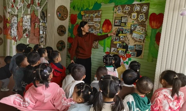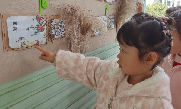 “二十四节气长廊”设置在幼儿园一楼,24幅按照时间顺序依次排列的“二十四节气”画面色彩丰富、制作精美,颇具艺术性,在整个校园中显得格外别致。