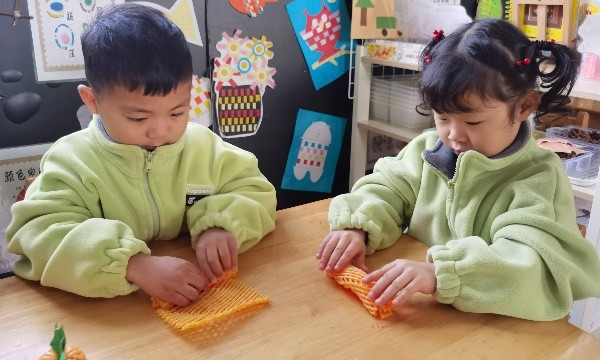 为了让小班宝宝更了解水果,喜爱水果,培养孩子的想象力、创造力以及动手制作能力,11月24日常州市天翠竹幼儿园小六班开展了《菠萝宝宝》的手工活动。 老师们通过废旧的水果包装袋做成菠萝宝宝的身体,并引导幼儿用画笔画出菠萝宝宝的手、脚和头发,幼儿十分感兴趣,课堂气氛活跃。