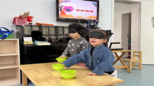 活动中孩子们通过欣赏绘本、阅读儿歌以及蒙眼游戏等形式了解到眼睛对于我们是非常重要的。眼睛是我们心灵的窗口,是我们通向美丽新世界的桥梁。爱眼护眼始于心,科学用眼践于行。为了更好地保护我们的眼睛,孩子们共同宣言:从细节做起,保护眼睛。