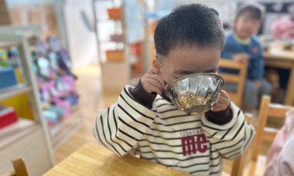 老师在班级营造浓厚的勤俭节约氛围,以节俭用餐、安全用餐、文明用餐为行动指南教育幼儿,使幼儿树立文明饮食观念,形成节俭用餐、文明用餐的良好风尚。