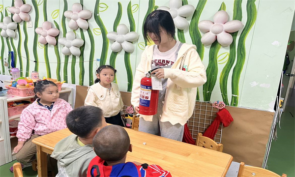2024年10月16日,翠竹幼儿园,大一班为进一步增强幼儿的消防安全意识,开展了一场别开生面的认识灭火器的活动。